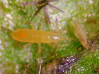 捕食する害虫:成虫及び幼虫が、アザミウマ類を捕食(成虫、老齢幼虫は1日20頭を捕食)。他にアブラムシ類、ハダニ類も捕食。 |