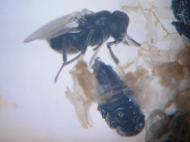 変色から10日後、寄生蜂成虫が羽化(体長1mm)