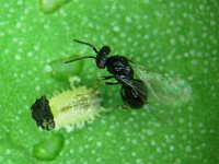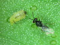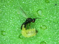 (体長2mm)と ヒメコバチ成虫(体長1.8mm) |
