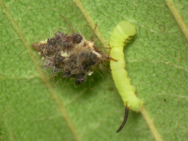 スズメガ幼虫を補食するカオマダラクサカゲロウ老齢幼虫