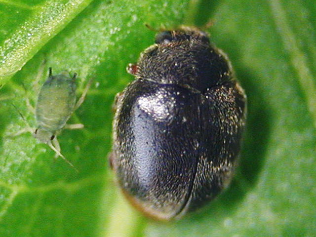 コクロヒメテントウ成虫(黒色型、体長3mm)