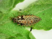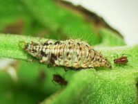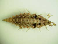 捕食する害虫:幼虫が、主にアブラムシ類を捕食(老齢幼虫は1日10〜20頭を捕食)。他にハダニ類、アザミウマ類、コナガイガラムシ類を捕食。 |