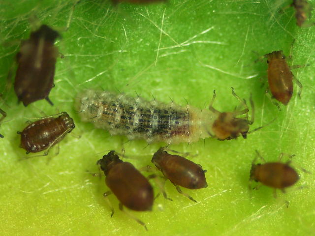 クロヒラタアブ若齢幼虫(体長2mm)