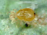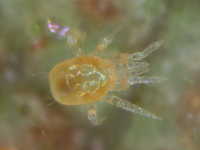 特徴:ハダニの卵から成虫までを補食する。捕食量はチリカブリダニより少ない。活動適温は20〜30℃で、チリカブリダニと比べて低温に弱いが、高温に強い。ハダニがいなくても花粉を食べて生きていけるため、飢餓耐性が強い。チリカブリダニより農薬の影響が少ない。