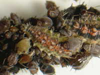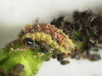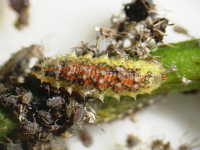 捕食する害虫:幼虫が、アブラムシ類を捕食。捕食するアブラムシ類は、マメアブラムシ、ワタアブラムシなど。 |