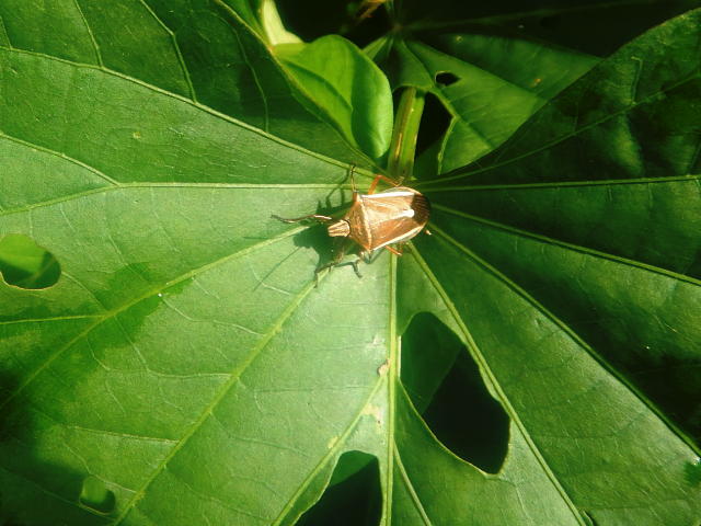 シロヘリクチブトカメムシ成虫 ハスモンヨトウなどの幼虫を捕食する