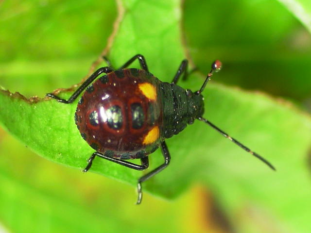 シロヘリクチブトカメムシ2齢幼虫(体長3mm)