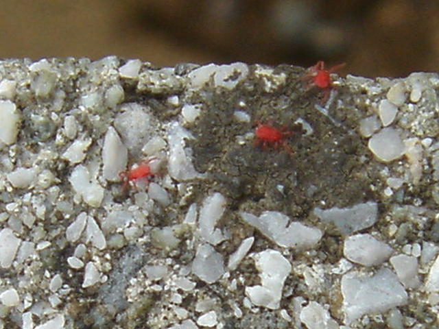 壁に集団で見られるカベアナタカラダニ