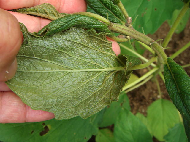 チャノホコリダニ 葉裏が褐変し光沢を帯びる
