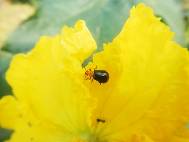 クロウリハムシ成虫が花を食害