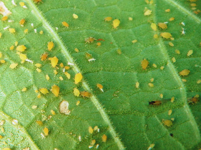ワタアブラムシ 有翅成虫とコロニー