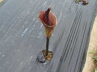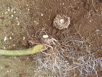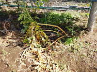 コンニャクは5月に芋を植え付け、11月に収穫するが、埼玉県では夏の気温が高いため、9月には地上部が枯れてしまうことが多い。