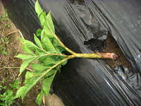 伝染方法:地表面に菌核として残った病原菌が伝染源となる。