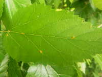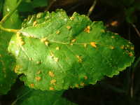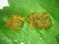 被害:葉に黄橙色の病斑を生じる。