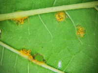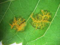 黄橙色の葉裏病斑