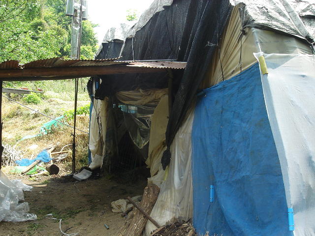 アライグマ被害を受けた養蚕ハウス