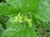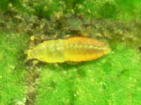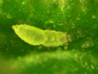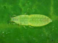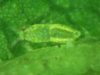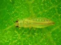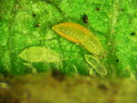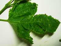 被害:先端部の若い葉が薄緑色になる。加害部は葉色が抜ける。