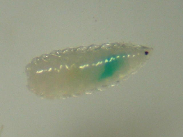 コメント:クワシントメタマバエ幼虫(体長1.2mm)