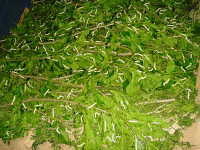 栽培したクワを餌にしてカイコを飼育する。