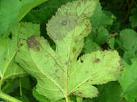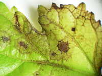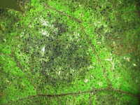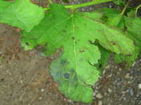 | 発生時期:9月〜10月 病原:糸状菌(かび) 伝染方法:前年の病葉や枝条に付着した病原菌が伝染源となる。 被害:葉がすす状のカビで覆われる。 |