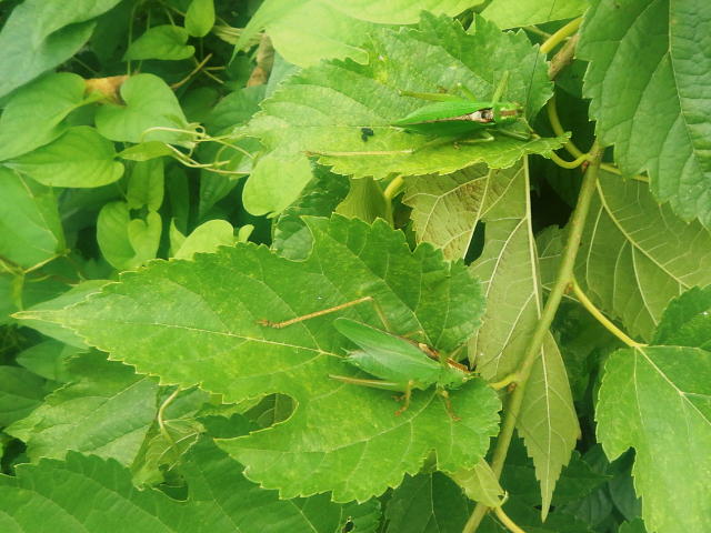 ヤブキリ成虫が2匹止まっている