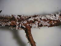 雄繭が多数寄生した枝