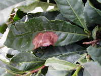 参考:一番茶芽が感染しても、潜伏期間が長いため、摘採時までに発病することはないので、収量や品質への直接の影響はない。
