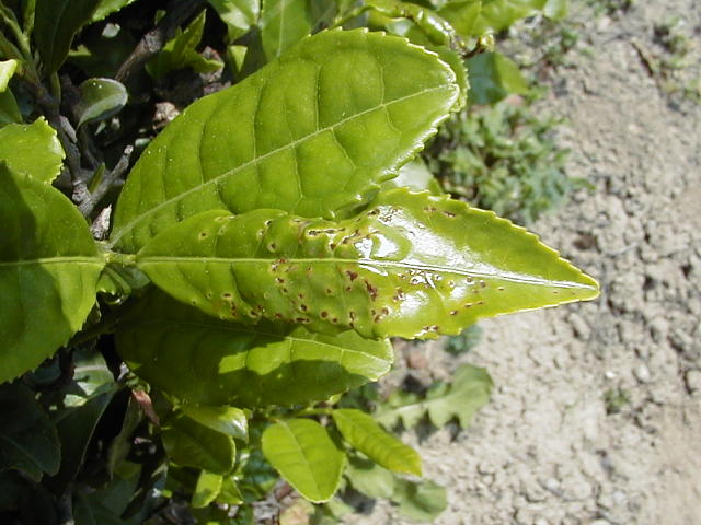 ツマグロアオカスミカメ 葉の展開とともに吸汁痕は拡大する