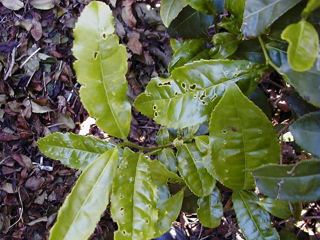ツマグロアオカスミカメ 展開とともに葉に小さい穴が現れる