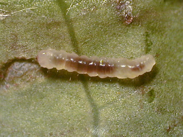 チャノホソガ中齢幼虫(体長3mm)