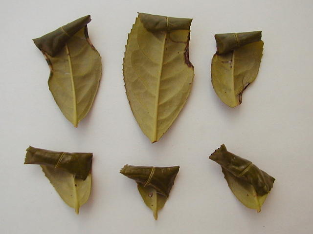 チャノホソガ老齢幼虫による巻き葉