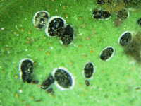 幼虫寄生葉とすす病