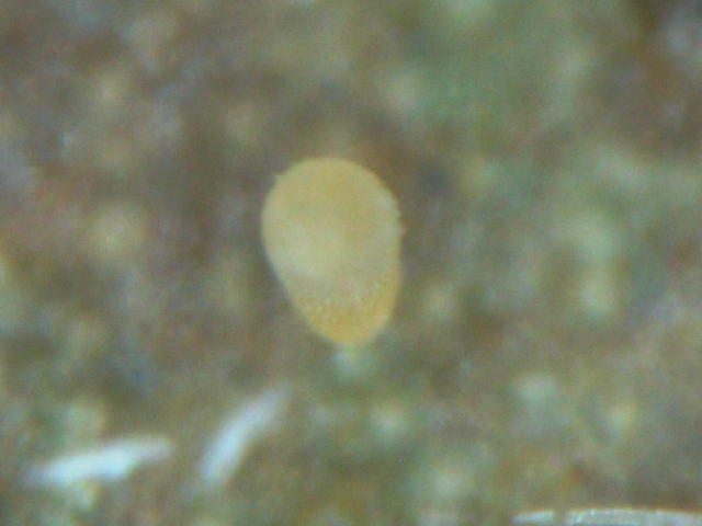 チャトゲコナジラミ卵(直径0.1mm、長さ0.2mm)