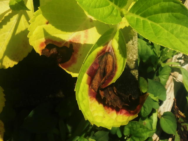 葉腐病 黒褐色病斑の回りに赤いハローを生ずる