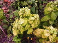 発生時期:9月 病原:ウイルス(キュウリモザイクウイルス:CMV)