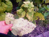 被害:新葉に濃淡のモザイク症状や葉の引きつれを生じる。