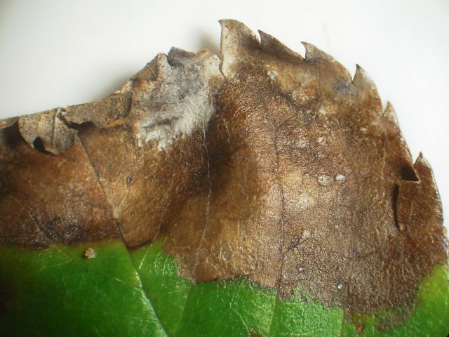アルタナリア属菌による葉枯れ 茶色で一部灰色の病斑