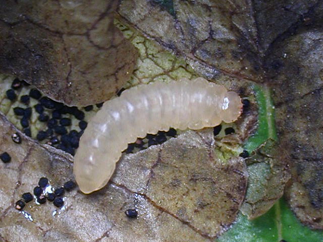 バラクロハモグリガ老齢幼虫(体長5mm)