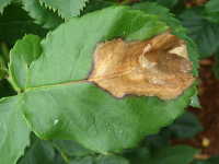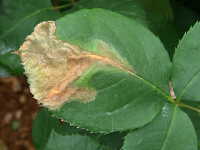 被害:葉に褐色の病斑、花に染み状の小斑点を生じる。