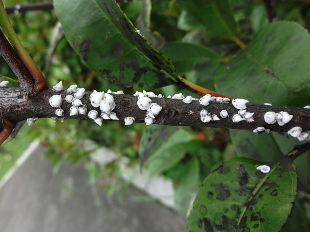 ツノロウムシ 成虫と幼虫のコロニー