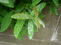 被害:葉にうどん粉状の病斑を生じる。 参考:やや乾燥した条件で発生しやすい。