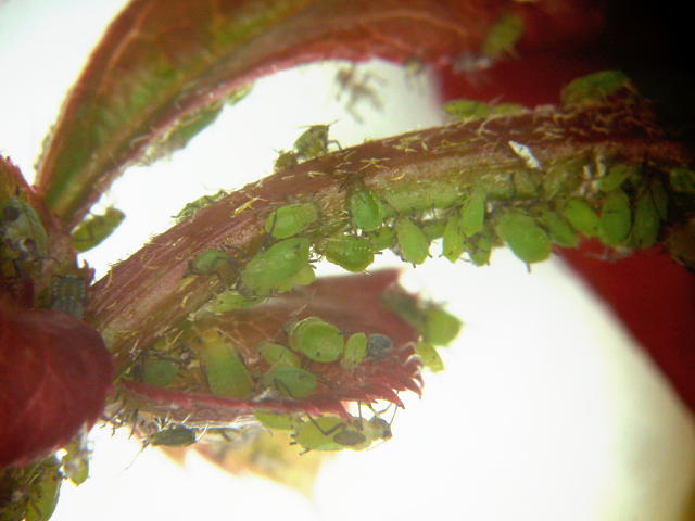 ユキヤナギアブラムシ 新葉のコロニー