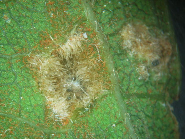フシダニ類による虫こぶの葉裏にも多数の毛が生えている