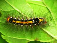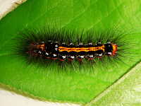 | 発生時期:5月〜6月 被害:幼虫による葉の食害 参考:幼虫、繭、成虫とも毒針毛を持っている。 |