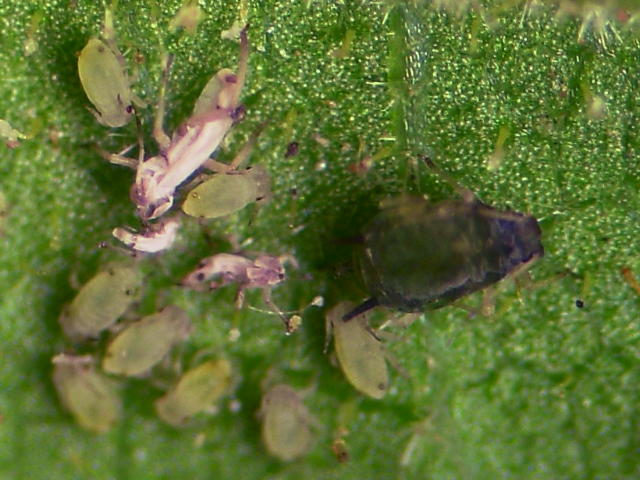 ワタアブラムシ成虫(体長1.5mm)及び幼虫