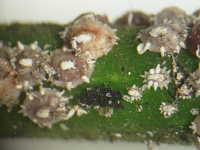 被害:成虫及び幼虫による吸汁害。排せつ物によるすす病。