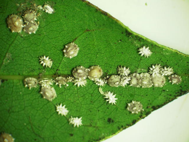 カメノコロウムシ 葉裏の寄生