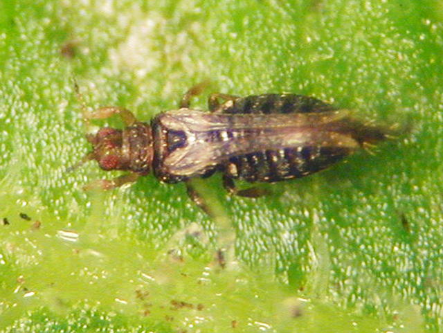 クリバネアザミウマ成虫(体長1.2mm)