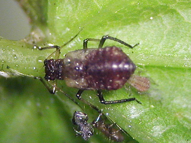 モミジニタイケアブラムシ成虫(体長2,0mm)及び幼虫