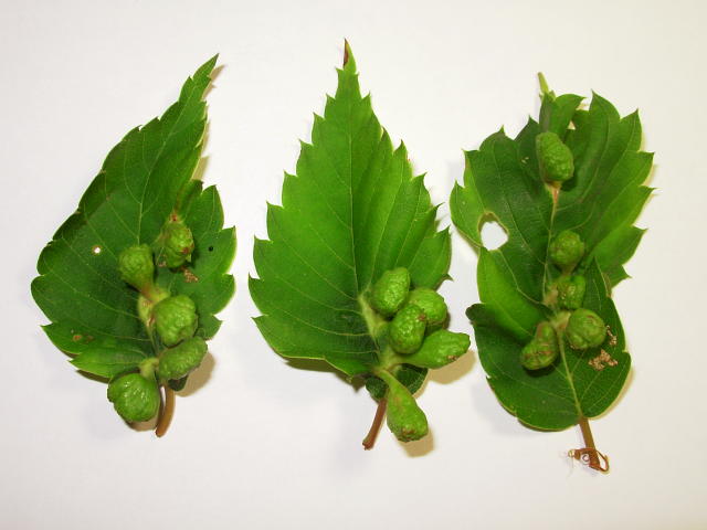 ケヤキヒトスジワタムシ 虫こぶが多数付いた葉